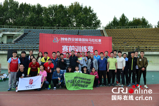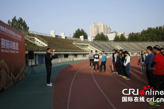 国际在线陕西频道报道(杨舒曼):2016西安城墙国际马拉松进入倒计时一周。10月29日下午,城墙马赛前训练营在西安人民体育场拉开帷幕,西安本地跑团、马拉松爱好者共100余人参加了当天的活动。