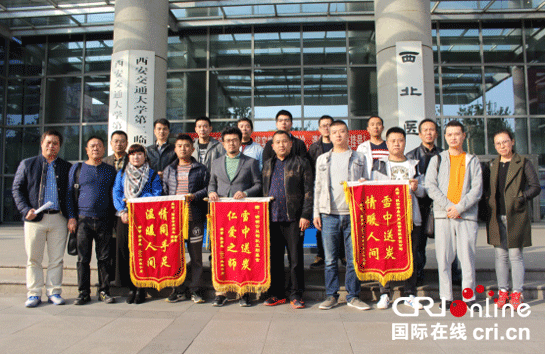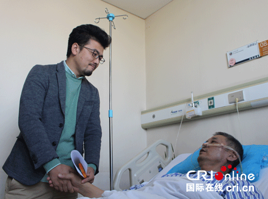 当张贵生见到这一群爱心人士的时候,他激动的伸手与大家握手,虽然躺在病床上很不方便,但不难看出他此时的心情是好的。随后,爱心代表将募捐的名单和现金递交给张贵生的儿子,希望这分爱心能帮助张贵生重获新生。张贵生已经泪眼婆娑,嘴唇开始抖动,一副欲言又止的样子,一直重复着“谢谢”二字。张贵生的儿子也连连道谢,并为前来的爱心公司代表送上三面“雪中送炭 情暖人间”、“雪中送炭 仁爱之师”、“情同手足 温暖人间”字样的锦旗。