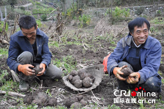 农户在地里收魔芋(农高会新闻中心 供图)