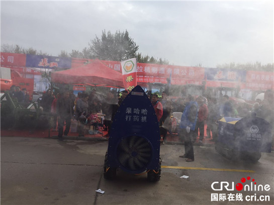 离这辆打药机不远的地方,另一辆喷药机喷出了大面积的水雾,这辆机器上写着“果哈哈”打药机,负责人刘士明告诉我们这是一辆主要针对果树研发出来的机器,果树行距5米以上、高度四米以内的果园都可以适用。“5到6米的喷射范围,半个小时便可以打完一箱300升的药水”。