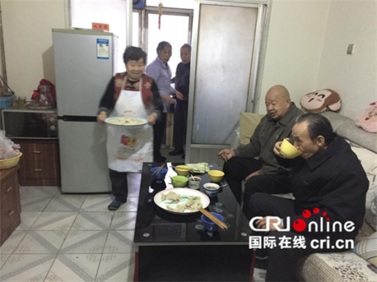 国际在线陕西频道报道(代红玉):12月21日是传统的冬至,这一天,千家万户都飘出了饺子的香味,而莲湖区环城西路街道玉祥门社区里80岁老人徐毓芬的家里除了飘出饺子的香味,还有其他几个古稀老人的欢乐笑声。