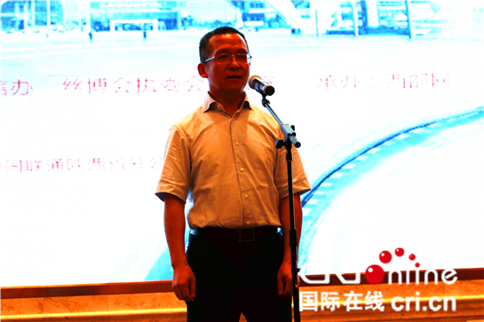 2017丝博会暨第21届西洽会执委会副主任兼秘书长、陕西省会展中心党委书记、主任李建义在启动仪式上介绍丝博会有关情况。