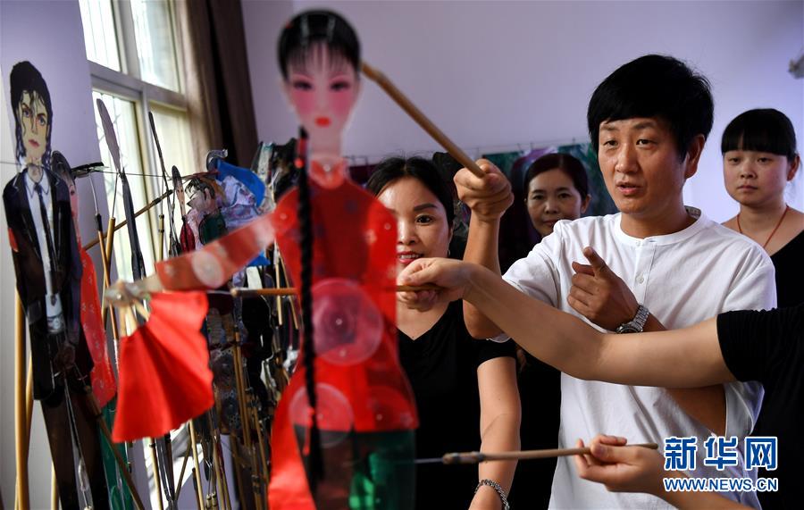 在陕西省渭南市华州区薛宏权的皮影剧场里,3个年轻的皮影表演人用竹签牵着“喜儿”的头、手、脚,让“喜儿”跳起了芭蕾舞,这部改编自歌舞剧《白毛女》的现代皮影戏《喜舞迎春》,让观众耳目一新。而随着一曲《黄土高坡》高亢激昂的背景音乐,美国流行音乐人杰克逊经典的“机械舞”和“太空步”,在皮影艺人的操作下活灵活现地呈现在银幕上,这是薛宏权全新创作的一场具有中国特色的国际混搭皮影《迈克·杰克逊》。今年49岁的陕西省渭南市华州区皮影传承人薛宏权,少年时就爱上皮影。在继承传统皮影的基础上,他将中国的皮影戏、欧洲的芭蕾舞、美国的流行音乐三种元素创新融合,使乡土气息浓郁的皮影变得时尚而优雅,为这一民间传统文化发扬光大开辟了新的途径。新华社记者 陶明摄