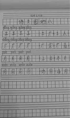 第二日,医生查房时,姥姥说小男孩有点儿闹情绪,哭了好几回。追问原因才知道,小小年纪的他不仅担心妈妈的病情,还因为来医院耽误了上课,为不能完成作业而着急。发热单元的医护人员得知小男孩的情况后,连夜开通了发热单元的网络,李燕玲医生和马乐护士长为其赶制了生字本和低算本,并准备好铅笔和橡皮。