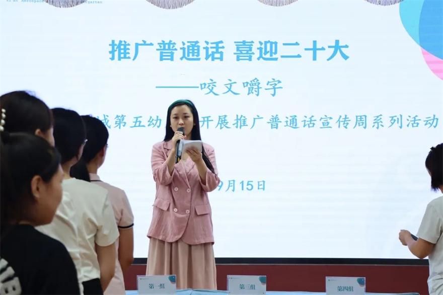为锻炼教师的口语表达能力,提高发音标准化,西安航天城第五幼儿园举办了“咬文嚼字”比赛。教师围绕几十种难易程度不同的多音字、绕口令篇目等进行答题,精彩的表现彰显了航天教师风采。(西安航天基地管委会)
