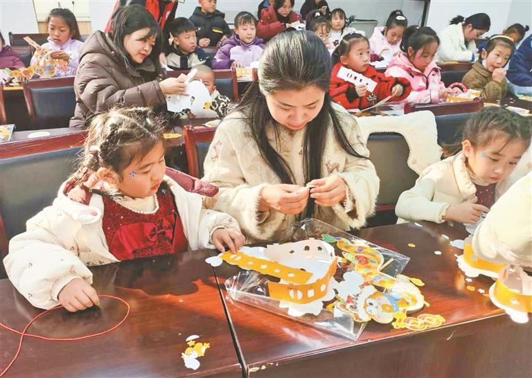 11月18日,在勉县勉阳街道何营社区秋假托管课堂,志愿者耐心指导小朋友做手工。 赵趣摄