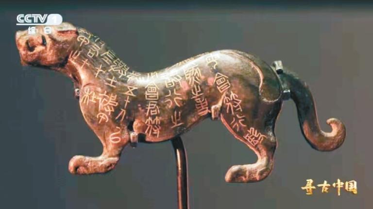 纪录片《寻古中国·寻秦记》系统梳理了秦从部族到一统天下的发展脉络。节目中亮相的杜虎符,堪称陕西历史博物馆的“明星文物”。该符为左半符,虎身造型生动,作行走状,昂首卷尾,展现出蓄势待发的力量感。它最珍贵的价值,在于虎身错金的九行四十字铭文,清晰刻录了秦国的军事调动制度“兵甲之符,右在君,左在杜,凡兴士披甲,用兵五十人以上,必会君符,乃敢行之……”表明调兵超过五十人就必须左右虎符勘合无误方可执行,仅烽火报警等紧急情况例外。杜虎符不仅是现存时代最早、铭文最长的秦国虎符,其严谨的错金篆书,也体现了文字统一前的艺术风貌,是研究古代军事、政治制度和书法演变的无价之宝。