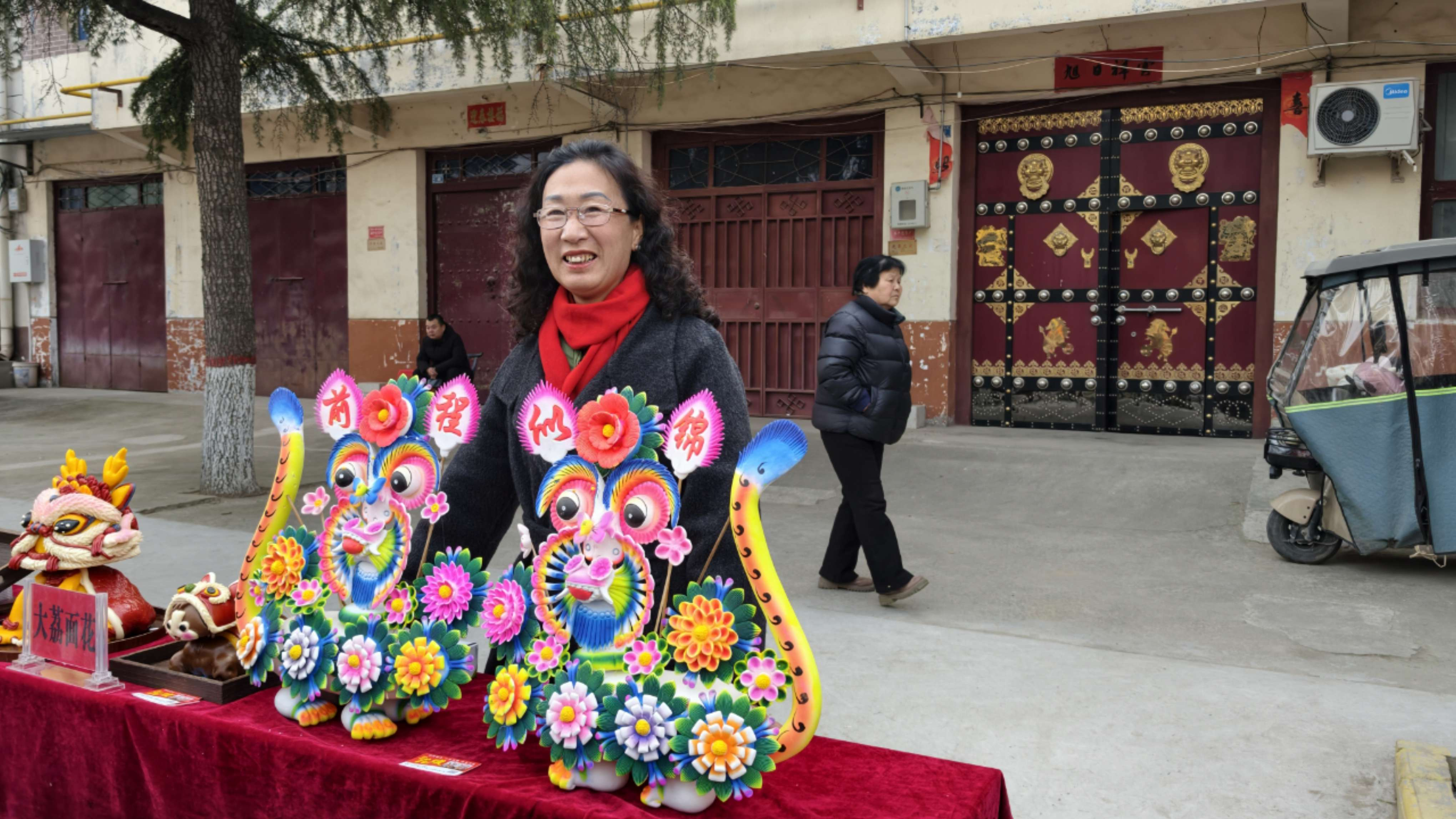 非遗艺人展示大荔花馍