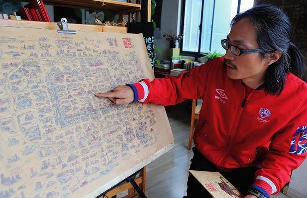 2000年,卫东青从西安美术学院毕业,当起了商业设计师。“2009年,我去青岛旅游,一位卖水的大妈向我推荐了一份当地的手绘地图。”这份手绘地图,卫东青保存至今,“各类景点、道路,一目了然,非常震撼。”