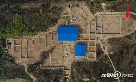 杨官寨遗址庙底沟文化墓地发掘区航拍