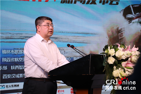 榆林市旅发委主任崔渊在发布会上讲话(郭克强 摄)