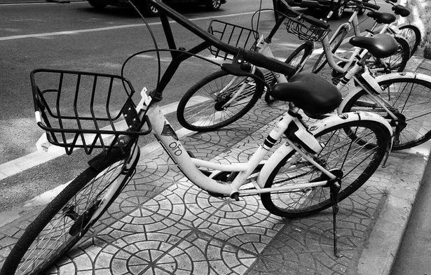 街头共享自行车的脚踏板被拆卸本报记者陈飞波实习生陈尔冬摄