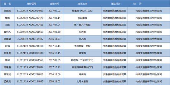 西安交警部门公布的2018年上半年终身禁驾人员信息(供图 西安交警支队)