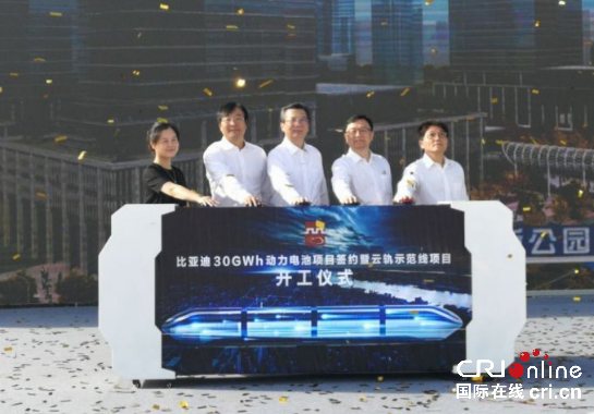 国际在线陕西频道报道(马淑媛): 9月9日上午,云轨示范线项目开工暨比亚迪30GWh动力电池项目签约仪式在西安高新区举行。陕西省委常委、西安市委书记王永康出席。西商总会会长、比亚迪股份有限公司董事局主席兼总裁王传福致辞。西安市委常委、高新区党工委书记、航天基地党工委书记钟洪江,比亚迪股份有限公司高级副总裁吴经胜参加仪式,比亚迪西安地区总经理刘振宇签约。西安高新区党工委副书记、管委会主任杨仁华主持仪式,西安高新区管委会相关负责人介绍项目情况,并作表态发言。