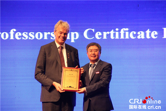 国际在线陕西频道报道(杨薇):9月26日下午,2014年诺贝尔生理学或医学奖得主,著名心理学家、神经科学家、挪威科技大学卡夫利科系统神经科学研究所和记忆生物学中心创始主任爱德华•莫泽(Edvard Moser)教授在西北大学做题为“Space and Time in the Brain(大脑中的时空)”的学术报告,此次报告是西北大学“诺奖论坛”第四讲。西北大学校长郭立宏向爱德华•莫泽颁发“西北大学荣誉教授”证书。聘任仪式由西北大学党委常委、副校长常江主持,校党委常委、党(校)办主任吕建荣及相关部门和院系负责人出席活动。来自西北大学、西安邮电大学、西安工程大学及西北大学附中的六百余名师生代表聆听了报告。