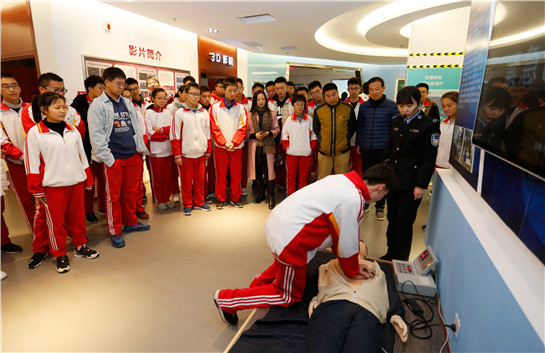渭南市道路交通安全宣传教育基地,民警手把手教学生学习心肺复苏术