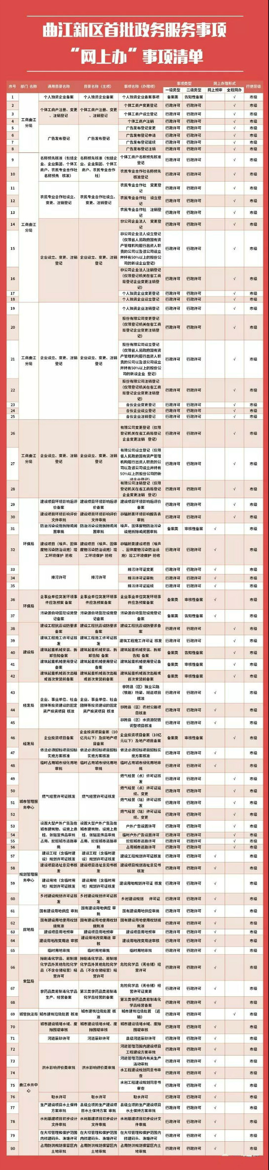 西安曲江新区首批政务服务事项“网上办”事项清单