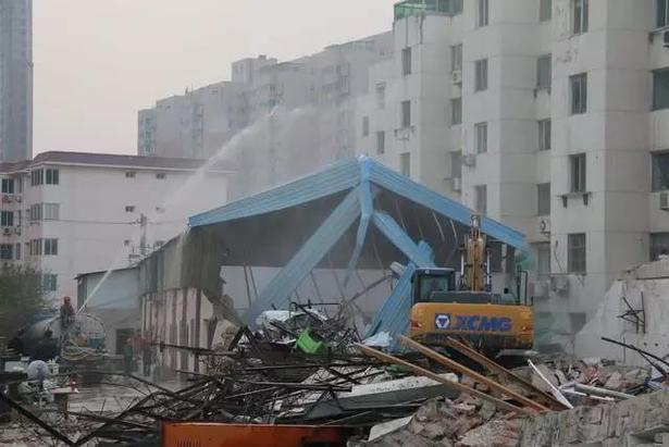 此次拆违活动出动执法人员10余人,工人30余人,洒水降尘车辆两台,大型机械一台,对八一巷曲江观城南北两处违法项目用房进行拆除,拆除面积约20010平方米。