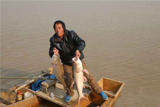 渔民向采访团展示垂钓所获(供图 渭南市委宣传部)