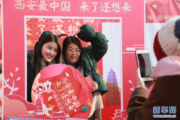 市民在“西安最中国 来了还想来”展板前合影。 新华网 申博望 摄