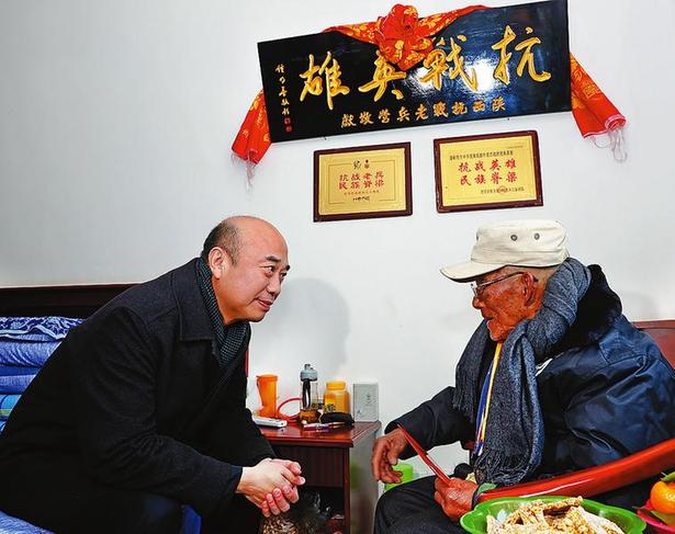 二月二日,陕西省长刘国中在山阳县慰问退役军人薛景武,向他表达敬意,颁发光荣牌。 亢建伟摄