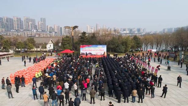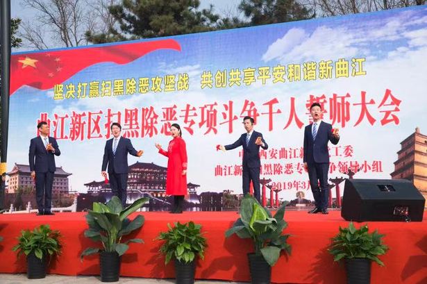 为巩固阶段性成果,取得“扫黑除恶”更大成绩,3月3日下午,曲江新区扫黑除恶 “再动员、再宣传、再深入”暨千人誓师大会在曲江池遗址公园中和广场举行。