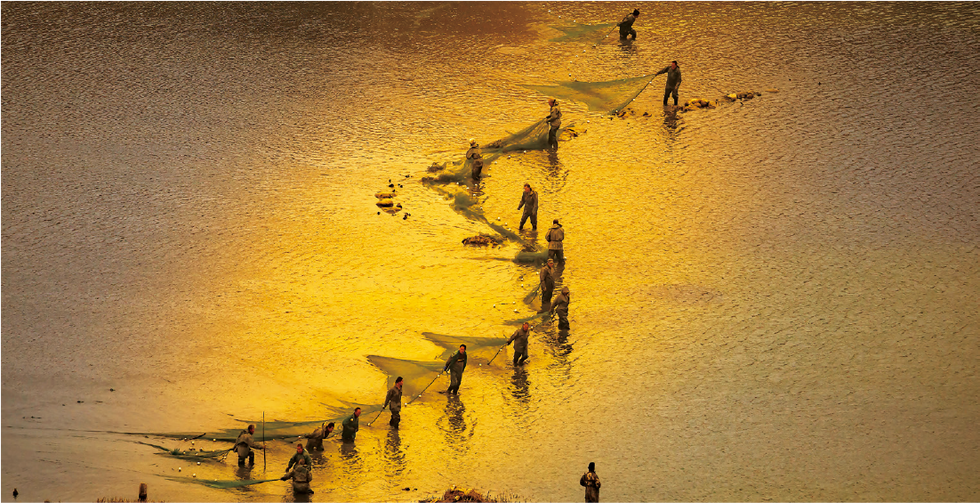 村民在渭河中捕鱼