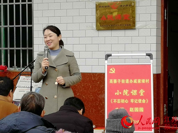 人民网宁强3月7日电(记者王继亮)7日下午2时,陕西宁强县高寨子街道戚家垭村“小院课堂”第二期开讲。江苏南通市“百姓名嘴”赵园园带着宁强县的期盼,赶赴千里为当地党员干部及群众传经送宝。赵园园以《不忘初心、牢记使命》为题脱稿生动阐述了“初心”与“使命”两个关键词,讲述了党和政府永远与人民同呼吸、共命运、心连心,永远把人民对美好生活的向往作为奋斗目标。