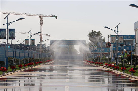 施工现场的车行道路、基坑周边还都设置了喷淋系统,有效抑尘,减少人工管理压力。数控技术将喷淋系统和环境检测仪结合,以PM2.5指数为指标采集数据,水泵房适时启动或关闭,整个施工现场定时、定量、均匀喷洒。项目大门口设置全自动车辆道闸系统,减少扬尘,降低事故,进入施工现场的每一台清运车辆都记录在案。