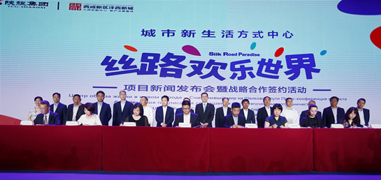 国际在线陕西报道(赵浚喆):6月23日,由陕西旅游集团有限公司(以下简称“陕旅集团”)、西咸新区沣西新城管委会主办,西咸新区丝路文化旅游发展有限公司承办的城市新生活方式中心——丝路欢乐世界项目新闻发布会暨战略合作签约活动在西安举行。活动以“共商共建、开放合作、互利共赢”为主基调。上海合作组织、陕西省文旅厅、陕西省外事办、陕西省国资委、陕旅集团、沣西新城管委会等单位相关负责人出席活动。