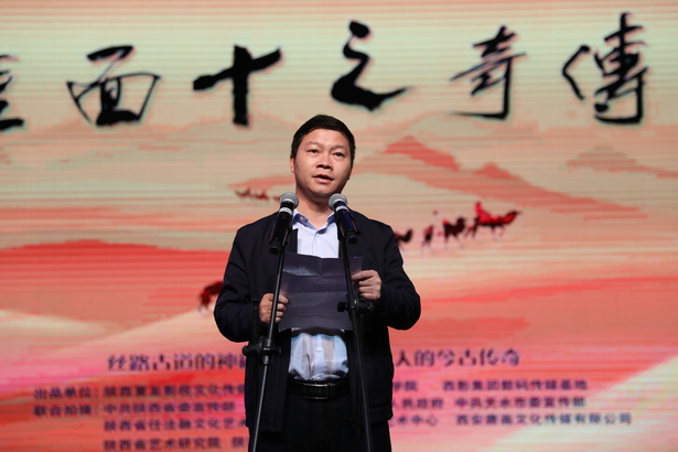 出品人、本片编剧姜增祥介绍了电影的创作拍摄历程。他表示,《丝路传奇之十面埋茯》在2016年起已进入采风与剧本创作阶段,拍摄转战泾阳茯茶小镇、三原于家大院、石泉古镇等地,剧组之所以“三年磨一剑”,团结一心、不畏艰难,就是要打造一部叫好又叫座的“精品力作”,为时代立言,为人民讴歌。