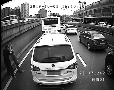 丁荣军告诉记者,这一幕发生在10月5日下午4点左右。当时,他驾驶公交车行驶至东二环石家街转盘辅道口等红灯时,发现了这面掉落在道路内侧的国旗。“当天风很大,还下着雨,看见这面国旗我心里冒出的第一个念头就是,赶紧把它捡起来,别让车轧了弄脏了。”没有犹豫,他立即下车小跑到国旗跟前,将它捡起,抖了抖灰尘,然后返回车里。
