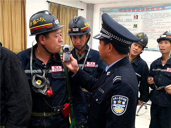 矿工入井前查饮酒 供图 陕西煤业