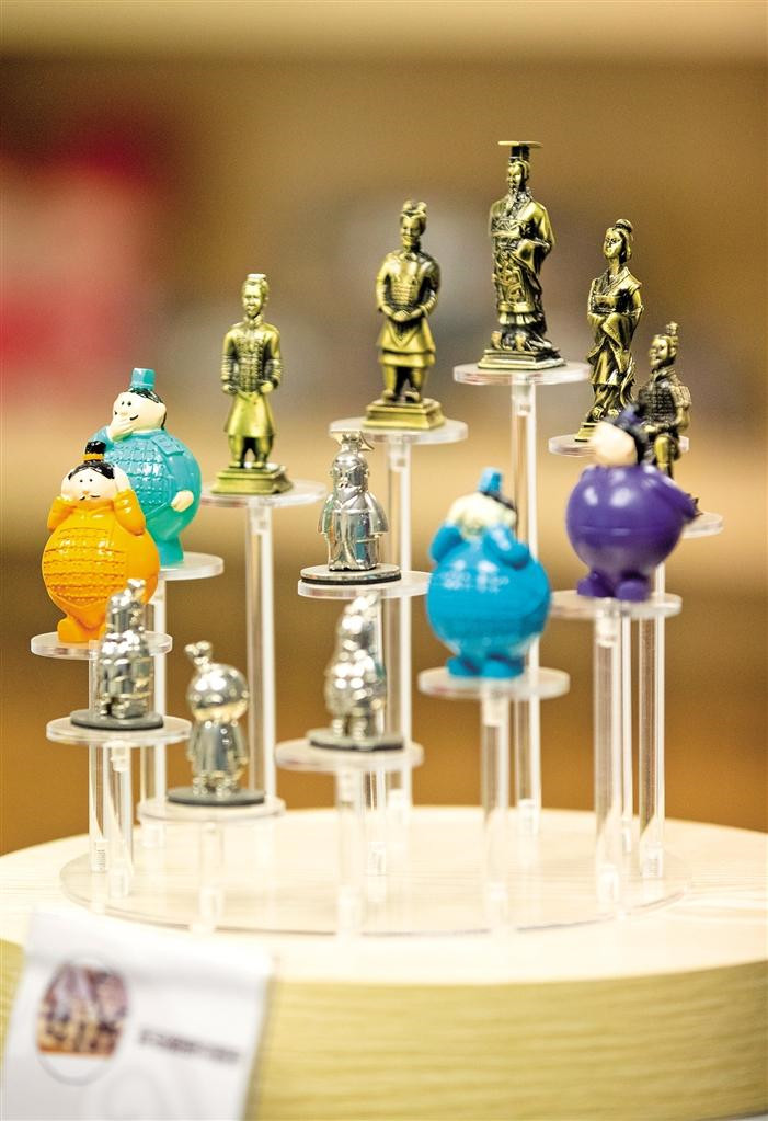 1月15日,在陕西秦皇大剧院演艺有限公司的文创商店里,兵马俑通过另外一种方式同游客见面。 本版照片均为本报记者 赵晨摄