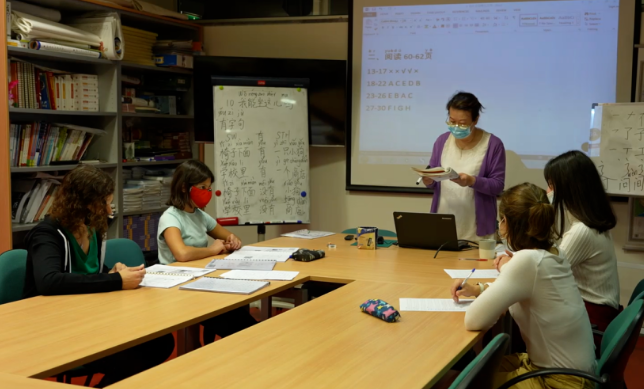 塞浦路斯大学孔子学院的中国教师正在教授中文 摄影 申忠超