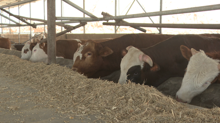 新庙村吉祥养殖场使用自动化喂料系统,牛的饲喂、饮水都可以定时、定量完成。据了解,吉祥养殖场目前的羊子存栏500只、牛存栏200头。养殖场还承包村内1000亩土地,主要种植玉米、土豆等农作物。养殖场每年向周边的村民购买价值100万元的饲草。