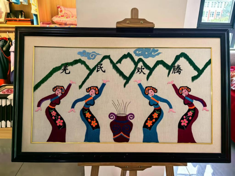 如今,羌绣正跨越时空,搭建起连接过去与未来的文化桥梁,让古老技艺在当代焕发永恒的生命力。通过“一带一路”文化交流平台,羌绣作品远销斯里兰卡、哈萨克斯坦等16个国家,并亮相中国国际时装周、丝博会等高端展会。2024年,公司与日本、韩国客户合作的汉元素文创产品订单突破百万元,真正实现了“指尖经济”撬动国际市场的跨越。