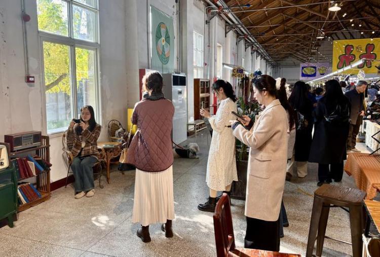 11月15日,西安天气晴好,舒适宜人,西仓市集文创公园迎来众多市民,大家趁着好天气逛市集、看展览、品咖啡,享受惬意周末。