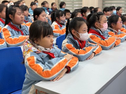 活动现场认真听讲的学生们
