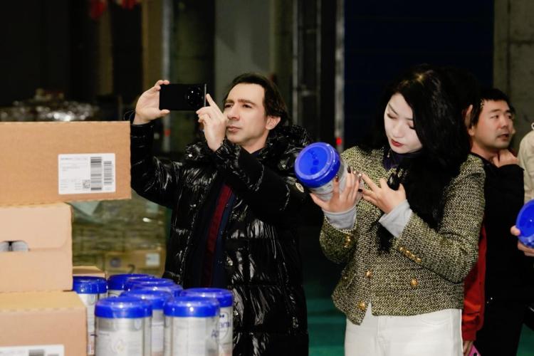 外籍专家正在拍摄保税仓内场景