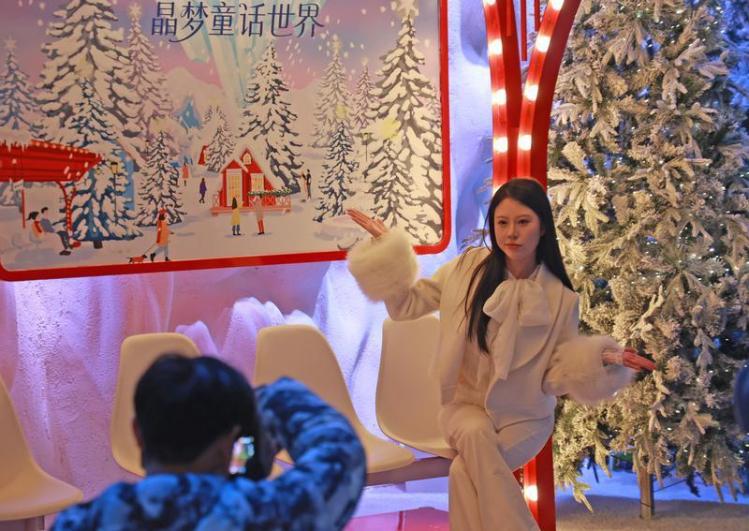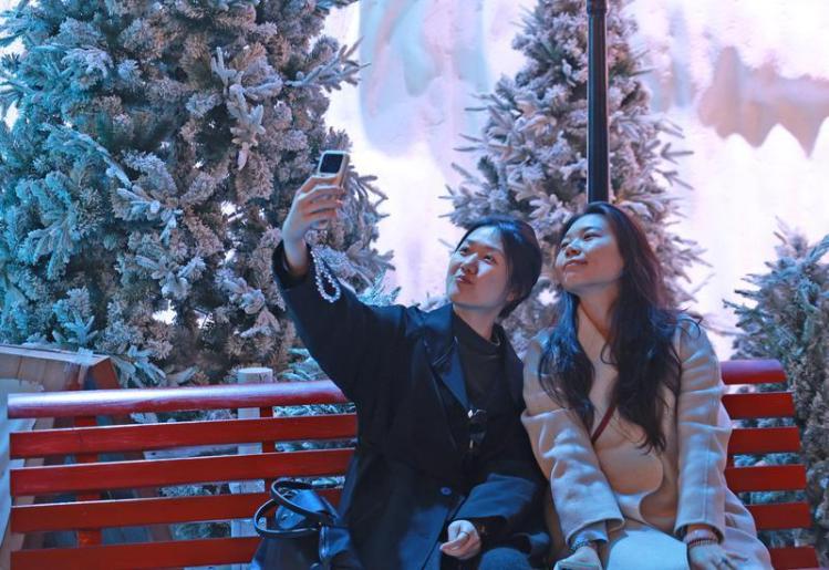12月2日,西安老城根 G-park 的“晶梦童话世界”里,东北雪乡的冬日盛景被巧妙搬进了商场。