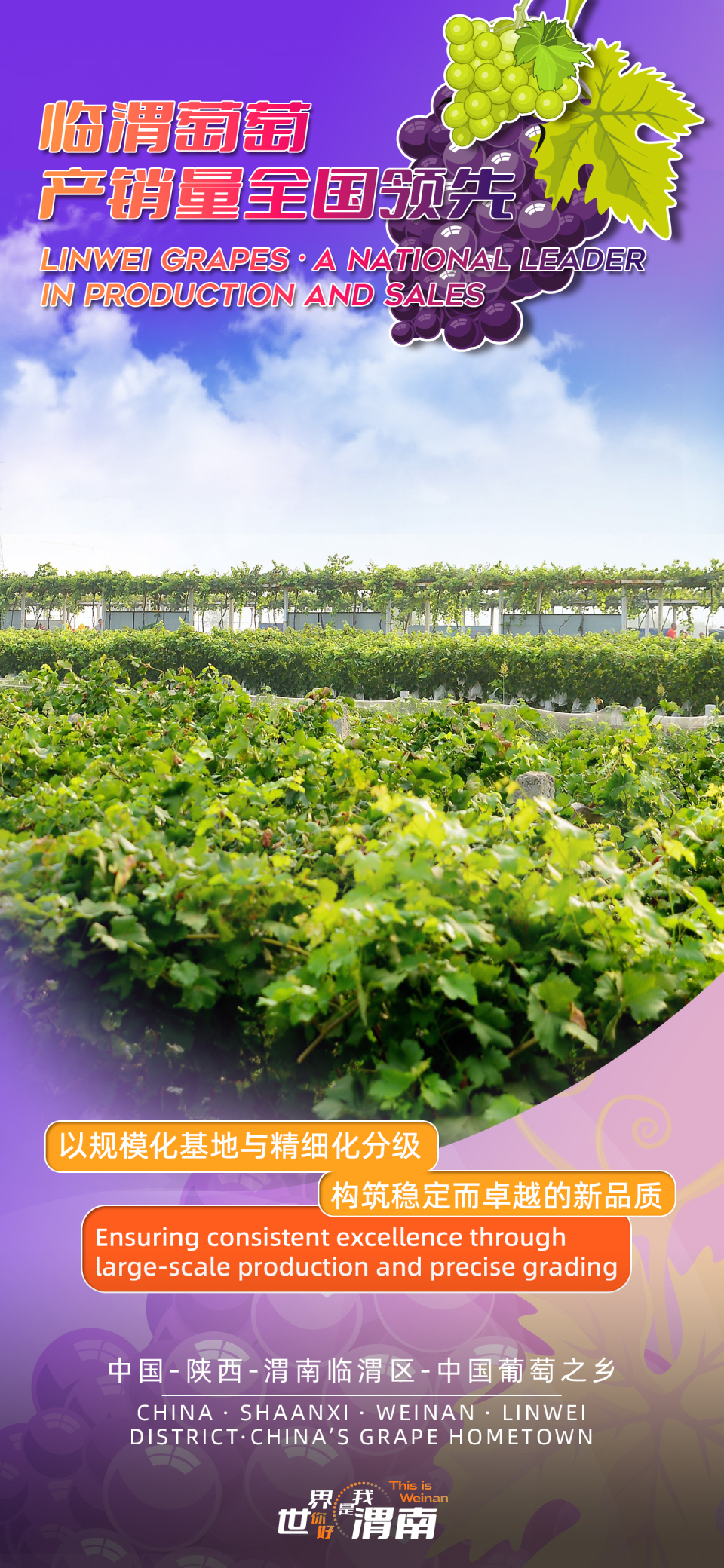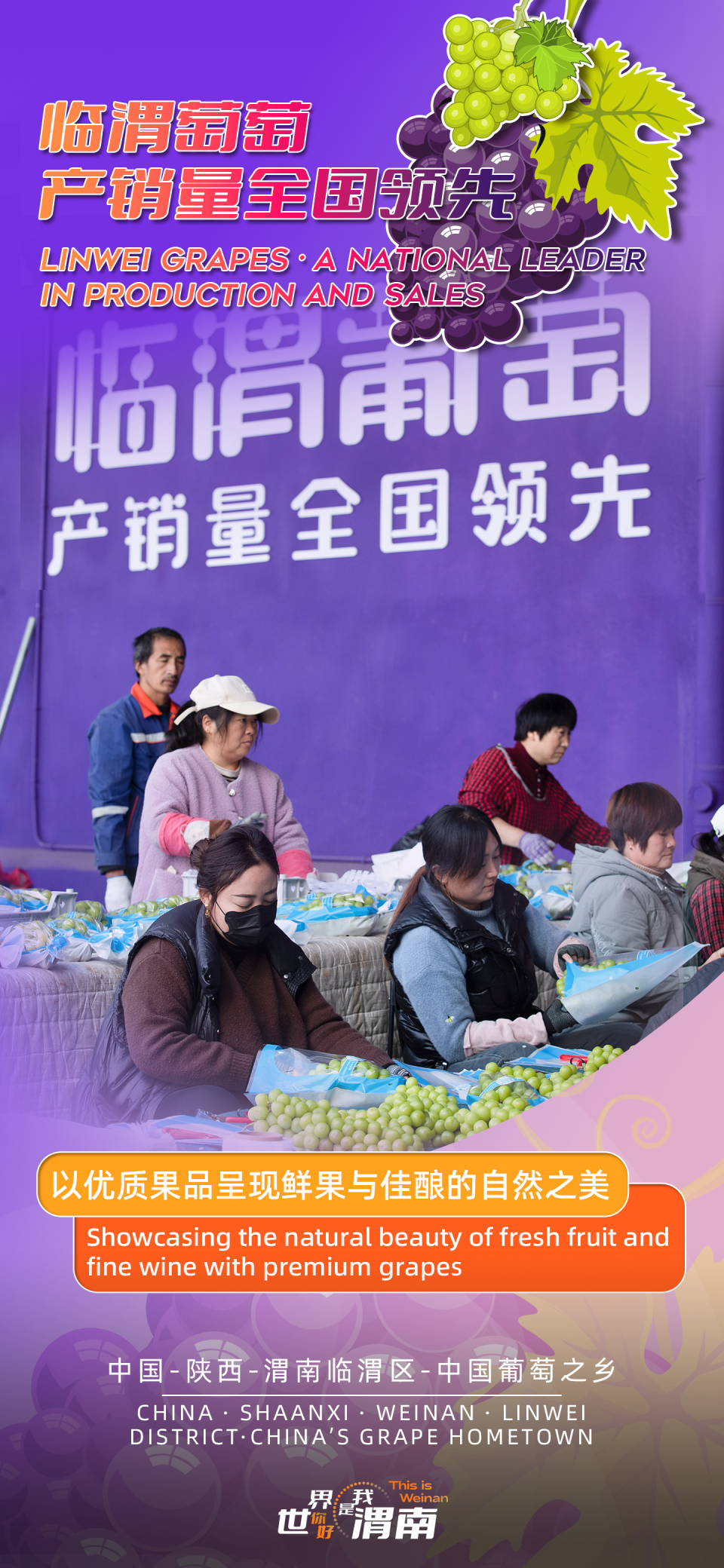 位于陕西省渭南市的临渭葡萄,以优质果品和严谨的科学管理著称。近年来,在规模化种植、绿色管理、精细化分级及出口认证等体系的加持下,其产业竞争力持续提升,成为国内产销量领先、并在国际市场上日益受青睐的优质葡萄代表。从鲜果到佳酿,从果园到世界餐桌,临渭葡萄正以卓越品质与金字口碑,让世界品味中国葡萄之乡的独特风味。(文/明玲 设计/陈书明 资料来源/临渭区委宣传部)