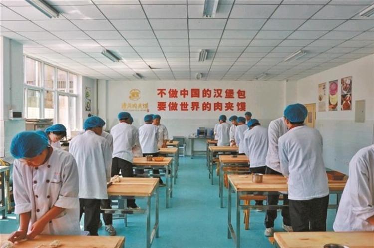 在潼关县肉夹馍产业学院的实训教室,学生在练习肉夹馍制作技艺(资料照片)。
