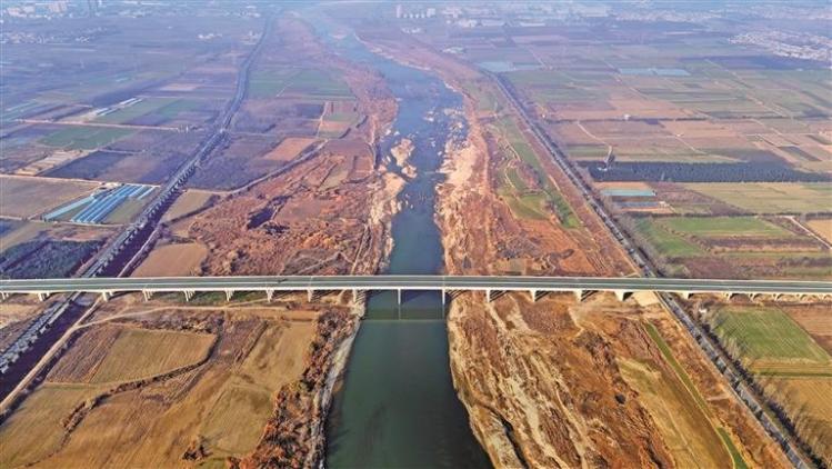全长1106米的渭河特大桥是眉太高速公路控制性工程。图为12月21日航拍的渭河特大桥(资料照片)。
