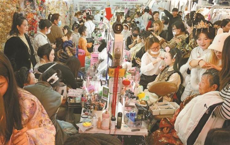 “从元旦开始,我们每天都是从早忙到晚,有时候化妆师都不够用。”在位于西安市西大街一洲商城的文辉汉服店,店主孙勇告诉记者,“顾客有四分之三是游客,也会有本地人来体验。我们不断调整经营策略,及时更新汉服款式、创新妆造风格等,以满足消费者的审美需求。”