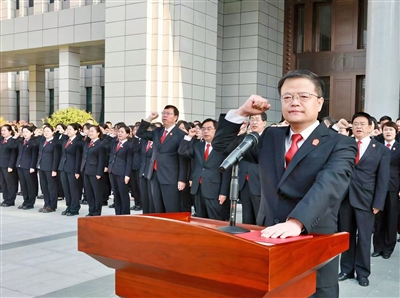 渭南中院全体法官干警进行宪法宣誓。